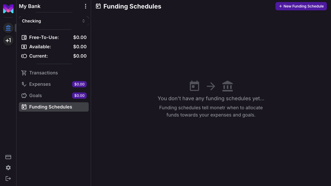 Funding schedules let monetr know when to allocate funds for your budgets. Think of funding schedules as "when do you get paid." Allocating funds each time you get paid ensures that your Free-To-Use funds remain predictable and consistent.