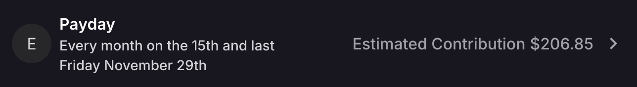 Once you’ve linked Expenses or Goals to a funding schedule, monetr calculates an "Estimated Contribution" displayed on the funding schedule page. This value represents how much monetr expects to allocate toward your budgets on the next funding date.