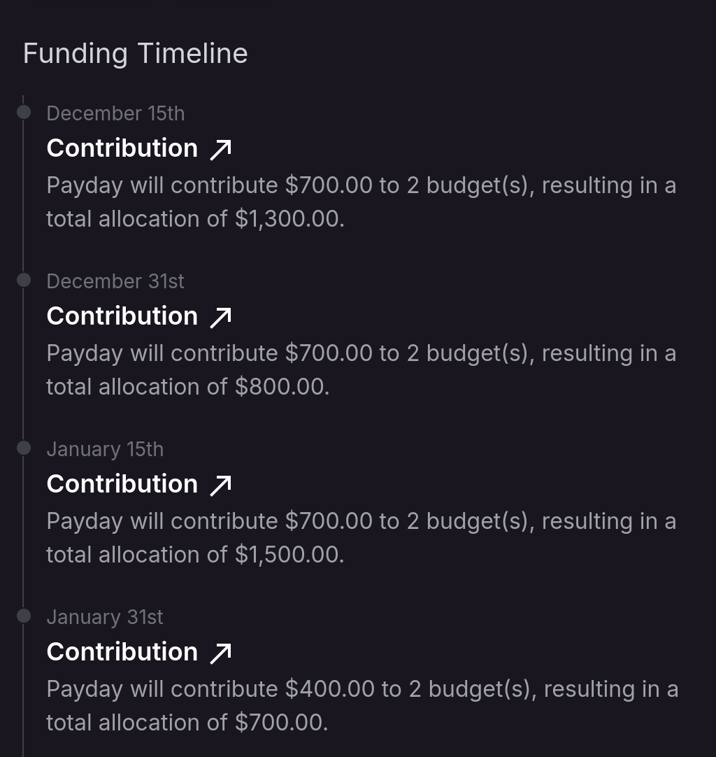 As you create more Expenses and Goals, the funding schedule provides insights into upcoming funding events.