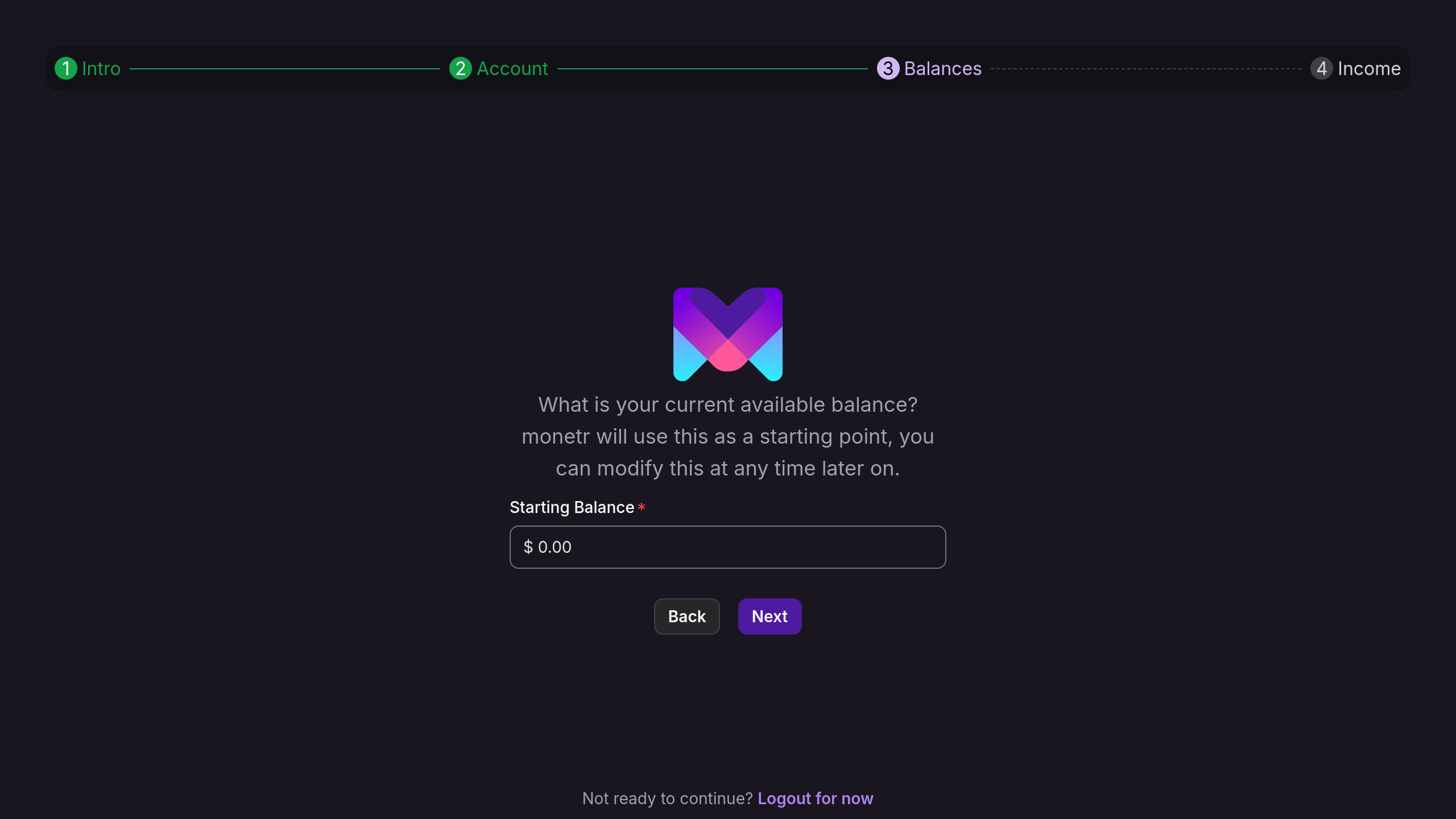 Set a Starting Balance