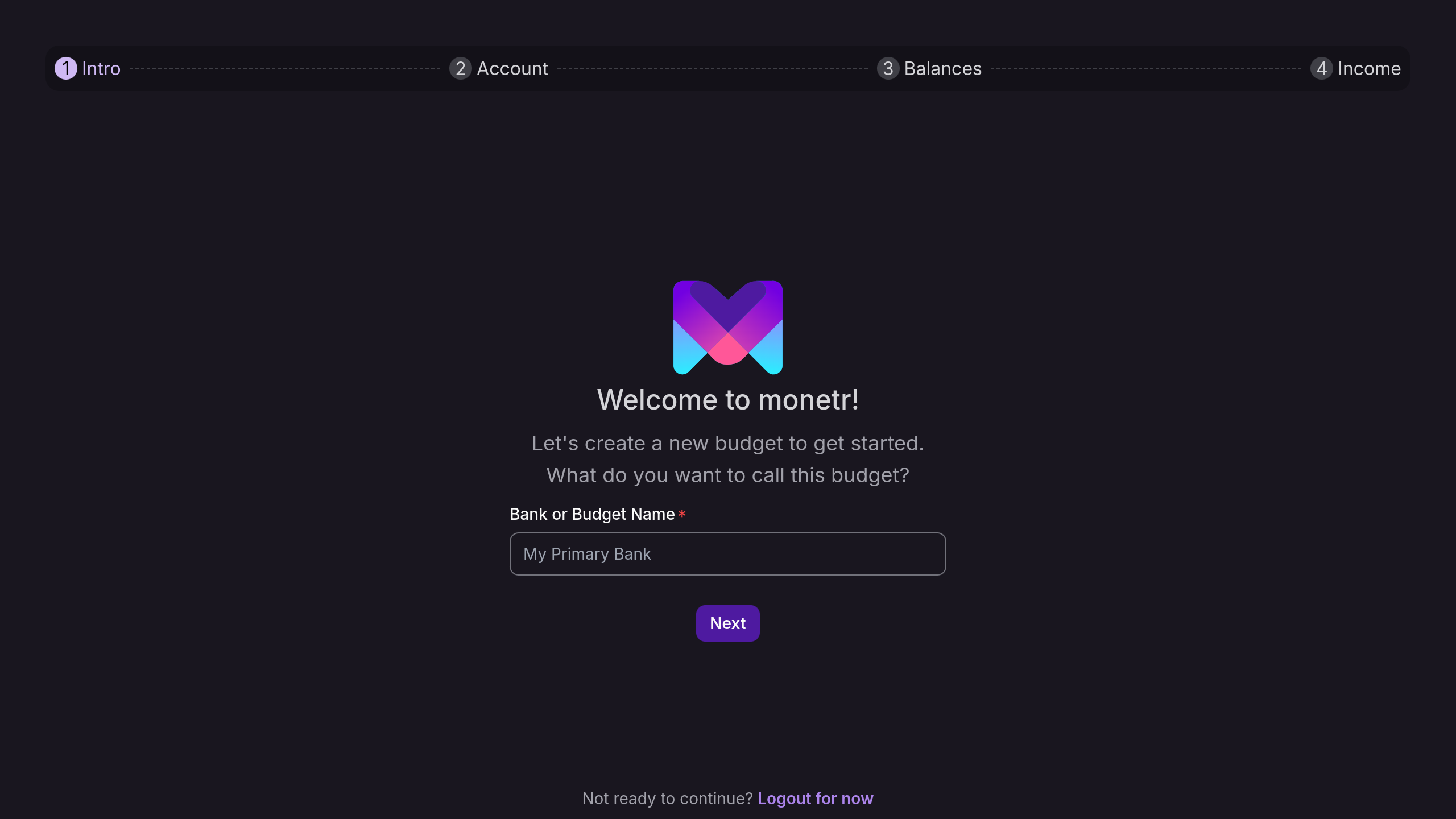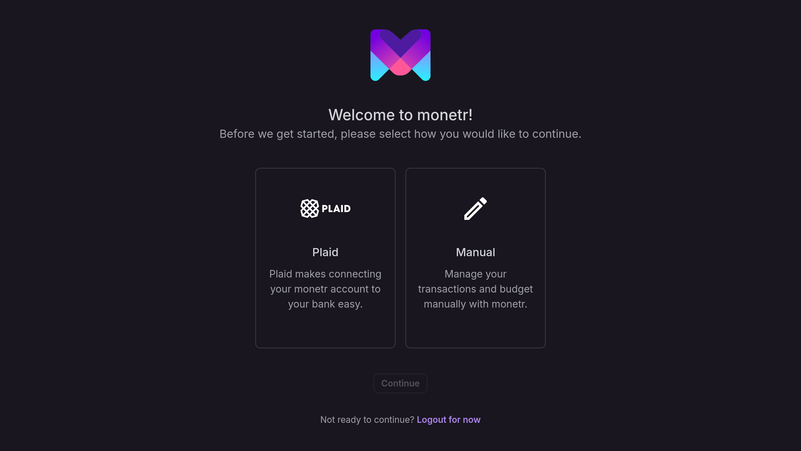 Welcome to monetr! This guide will walk you through the initial steps to set up your account and start managing your finances. You can choose to connect your bank account via our partner Plaid for automated updates, or create a manual budget for full control over your data, including the option to upload transactions via a file.