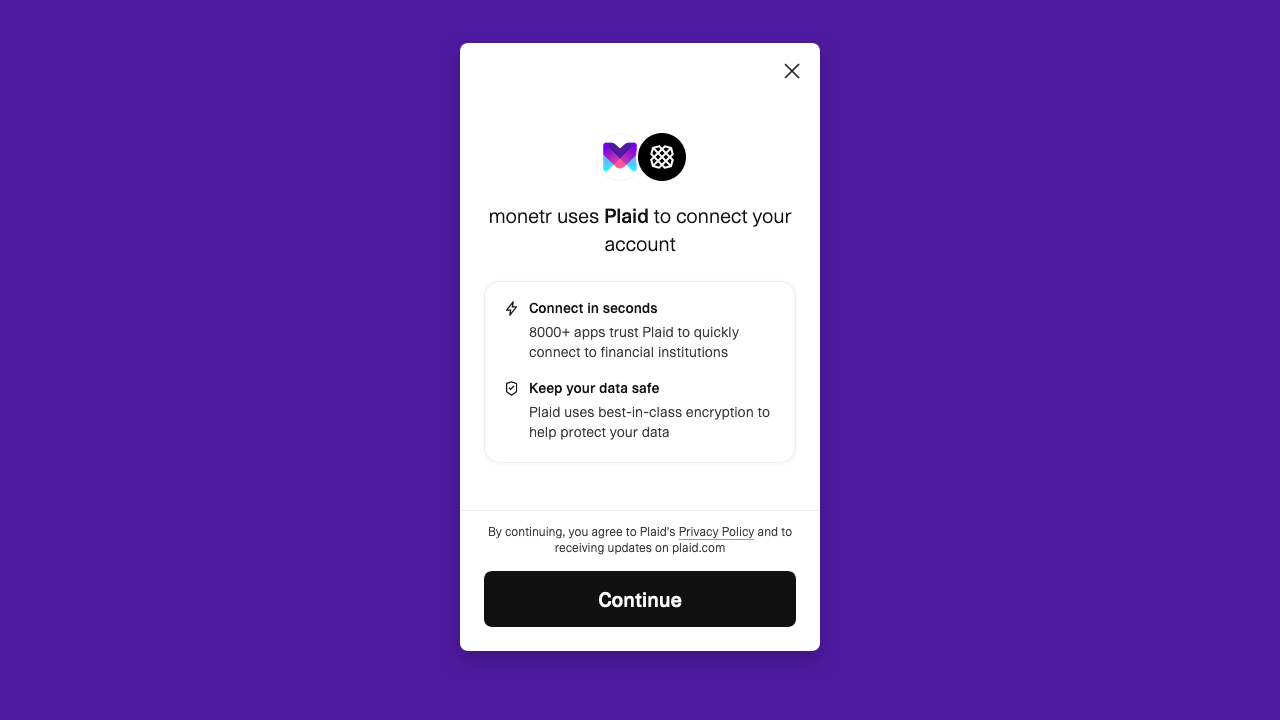 Using Plaid is the simplest way to manage your finances in monetr. Plaid securely connects to your bank and imports transaction and balance data automatically.